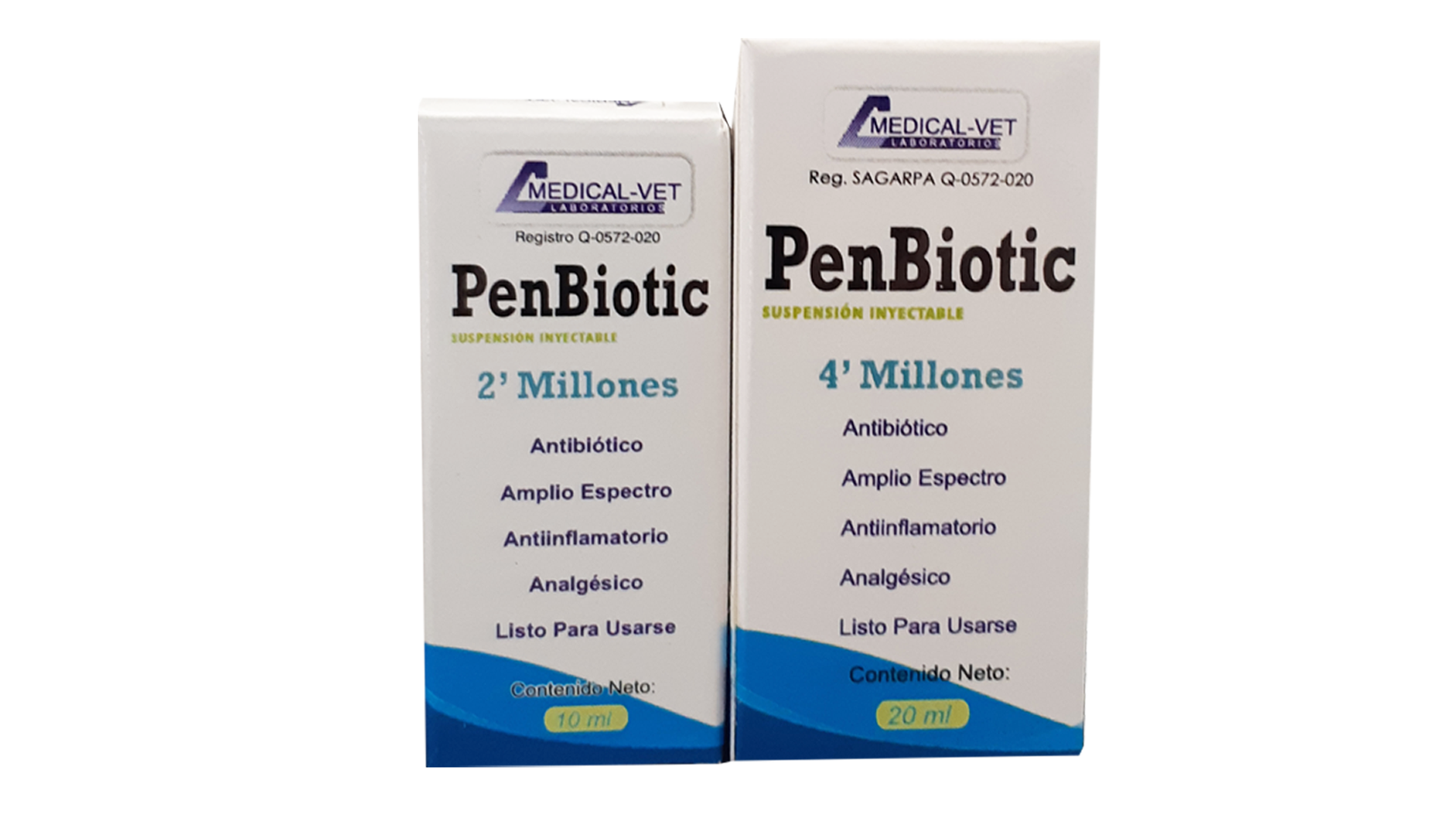 Combinación sinérgica de antibióticos para amplio espectro contra bacterias grampositivas y gramnegativas de rápida acción y efecto prolongado, en suspensión acuosa inyectable lista para usarse.